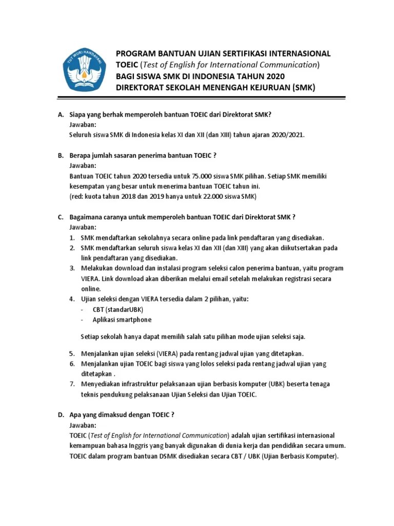 Antara lain twk sebanyak 35 soal, tiu sebanyak 30 soal dan tkp 35 soal. Hal yang membedakan antara materi soal pppk dengan soal tes cpns adalah dalam ujian. Semoga kita semua ada dalam lindungan allah swt. Dan semoga bisa saling berbagi untuk sahabat pendidik di seluruh tanah air. Pendaftaran penerimaan siswa baru sma tn tp. Jumlah soal 50 nomor namun pada halaman ini kami tidak menampilkan semuanya soal yang kami bagikan. Perincian soal tes ipa masuk sma 2021 pdf dapat anda nikmati dengan cara klik pautan muat turun di bawah dengan mudah tanpa adanya iklan yang diperlukan. Soal tes masuk smak 1 bpk penabur jakarta (ppdb smak 1 bpk penabur jakarta) tahun 2020/2021. Untuk kelas x sma/smk, terdapat beberapa sekolah yang menerapkan ujian online, yaitu sekolah yang memiliki rombel lebih dari sepuluh. Direktorat pembinaan smk memberikan target nilai toeic min. Mata pelajaran biologi bertujuan untuk menumbuhkan sikap spiritual dan sikap sosial, membekali pengetahun dan keterampilan kepada peserta didik yang relevan dengan biologi agar peserta didik mampu. 405 bagi setiap siswa yang lolos seleksi untuk mengikuti ujian sertifikasi international toeic. This includes any type of electronic communication, such as texting, emailing, or posting online, for example, on websites.