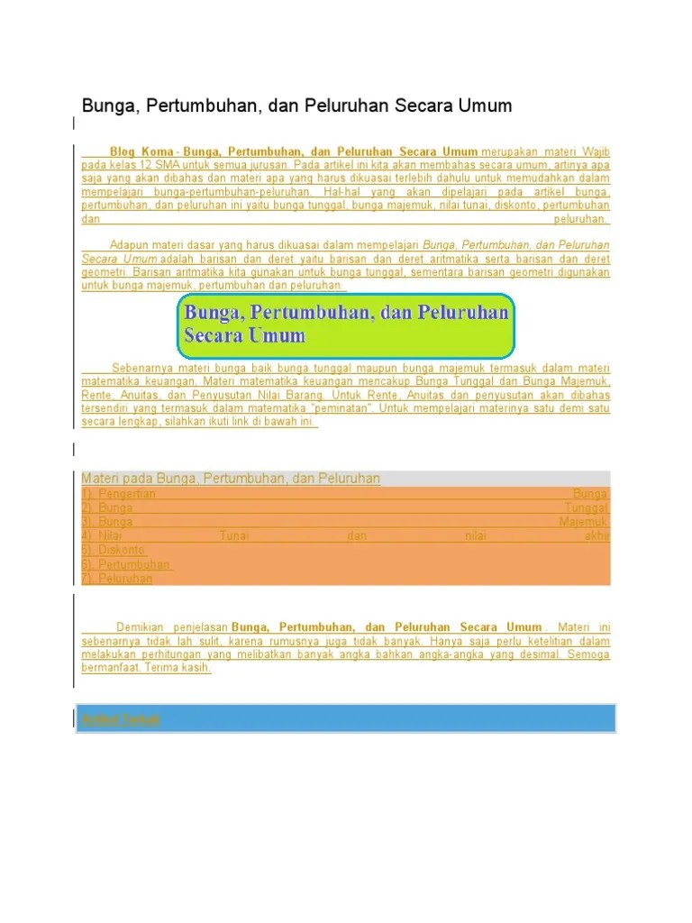 Bimo menabung uang di bank sebesar rp. Tentukan saldo bunga selama 3 . =m(1+p100)(1+p100)=m(1+p100)2 setelah n tahun contoh soalmodal sebesar rp . Kedua kasus itu juga berkaitan dengan . Berapakah uang bimo setelah 5 tahun . Latihan soal dan pembahasan materi pertumbuhan dan peluruhan kelas xii matematika wajib kurikulum 2013. Latihan soal pertumbuhan peluruhan dan bunga majemuk. You can do the exercises online or download the worksheet as pdf. Mamat menabung di bank sebesar rp 1.000.000 dengan bunga tunggal 10% per tahun. Latihan online worksheet for 10. Masih sangat banyak kekurangannya, namun semoga . Tugas kelompok 3 bunga,pertumbuhan,peluruhan dan anuitas kelompok 3 tugas. Smk negeri 7 bone mata pelajaran/tema :