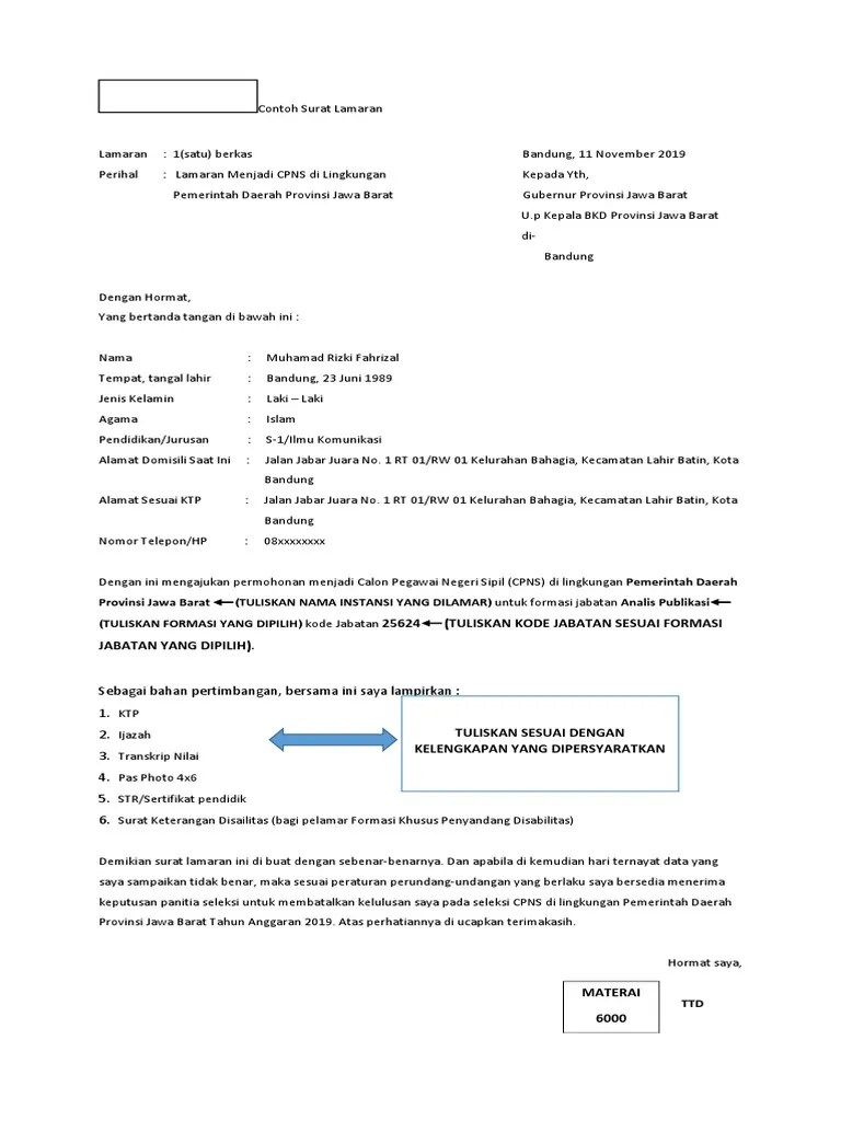 Contoh surat lamaran cpns kab bogor.